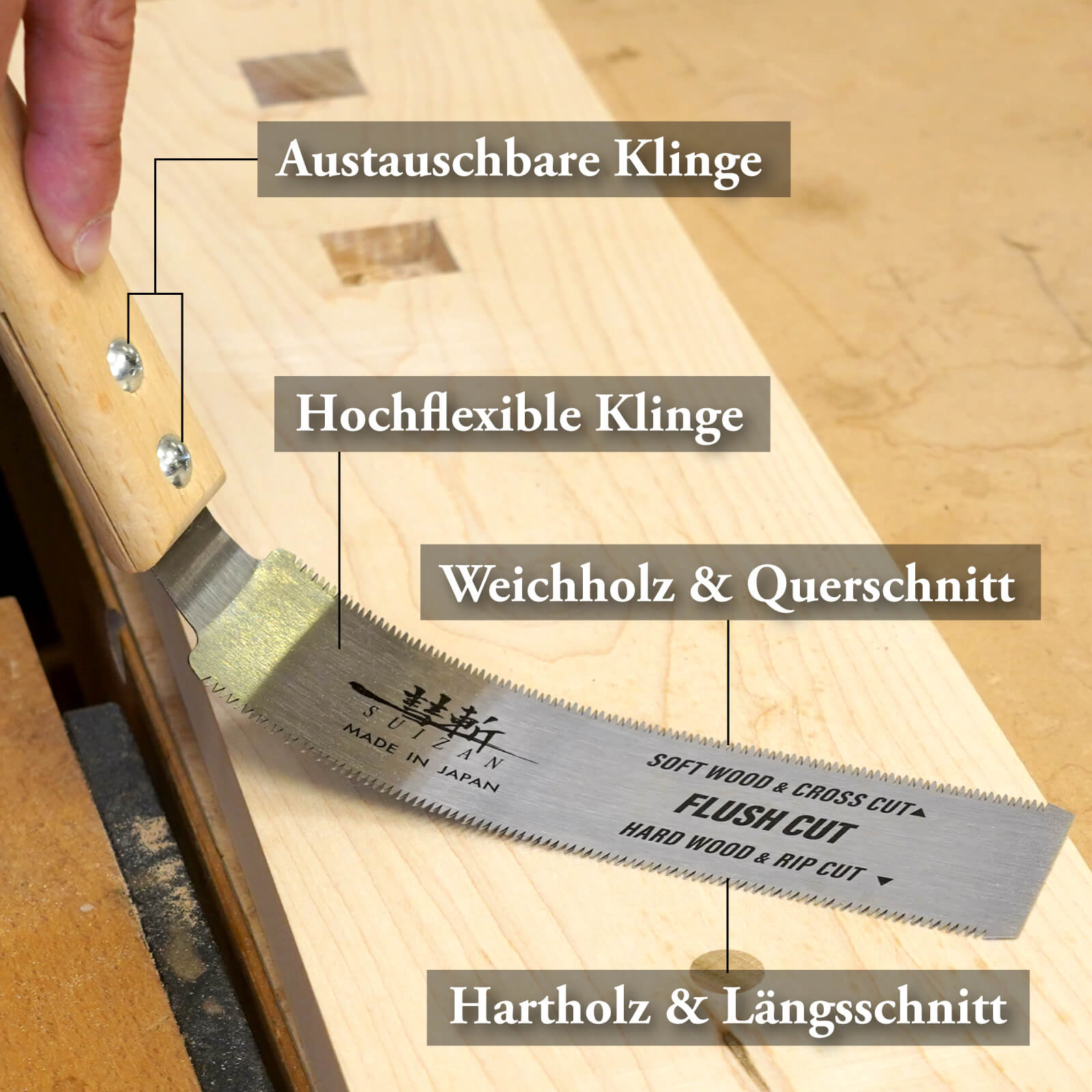 • JAPANESE STEEL: All SUIZAN Japanese saws are made with top-quality Japanese steel. The high-grade steel ensures razor-sharp cuts, and the blades are also replaceable for extended use.
