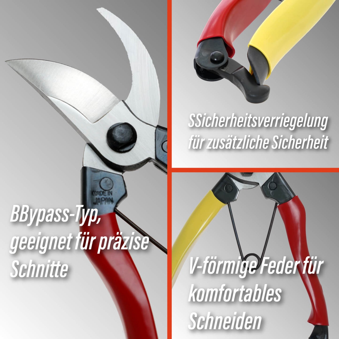- 【Bypass-Scherrleistung】 Mit Bypass-Baumscheren halten Sie den Griff und kreuzen die Klingen, um Äste zu schneiden. Die oberen und unteren Klingen klemmen zusammen, um einen sauberen Schnitt zu machen, was sie ideal zum Beschneiden von Ästen macht.