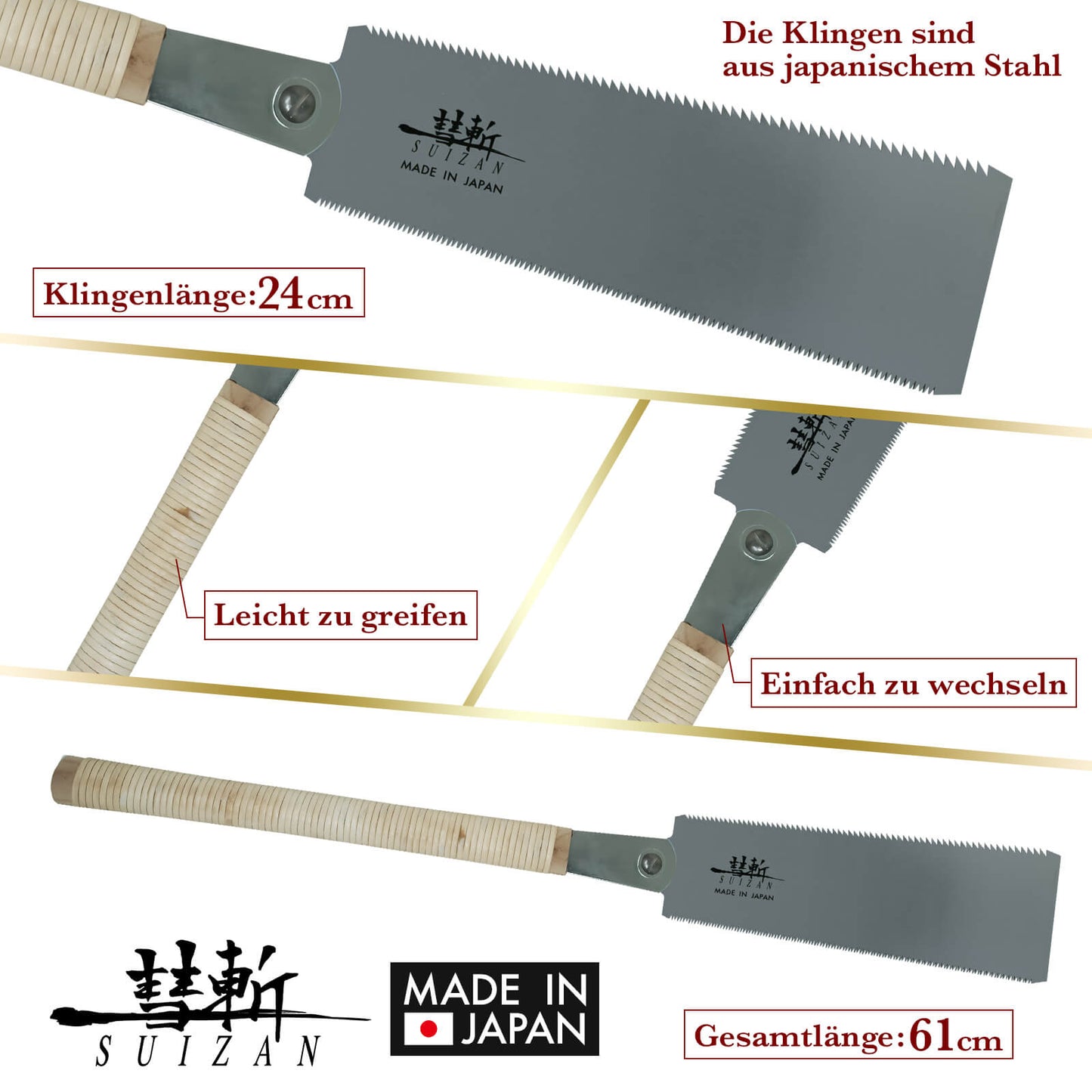 - JAPANISCHER STAHL: Alle SUIZAN-Japanischen Sägen bestehen aus hochwertigem japanischem Stahl. Der hochwertige Stahl sorgt für rasiermesserscharfe Schnitte.