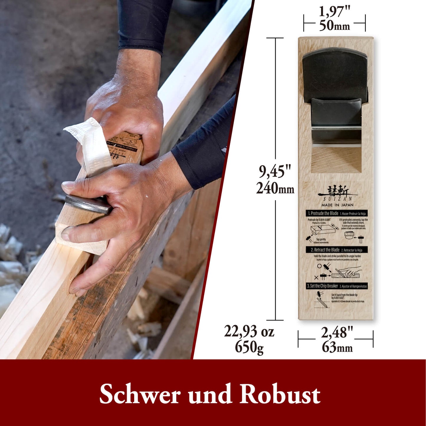- HOCHWERTIGES JAPANISCHES HOBEL: Erleben Sie glatt und eben Holz wie nie zuvor. Nach dem Gebrauch dieses Hobels ist kein Schleifen des Holzes mehr notwendig!