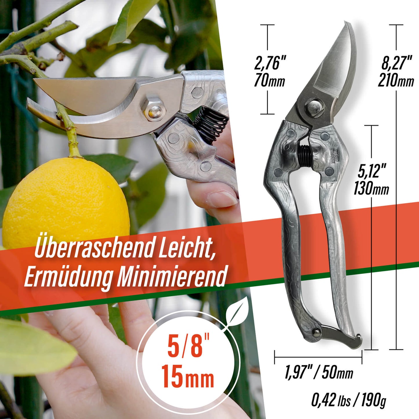• 【Compact and Ultra Lightweight】 Weighing only 0.42 lbs (190g) and measuring 8.3 inches, these hand pruners reduce hand strain and improve efficiency during extended gardening or farming sessions.