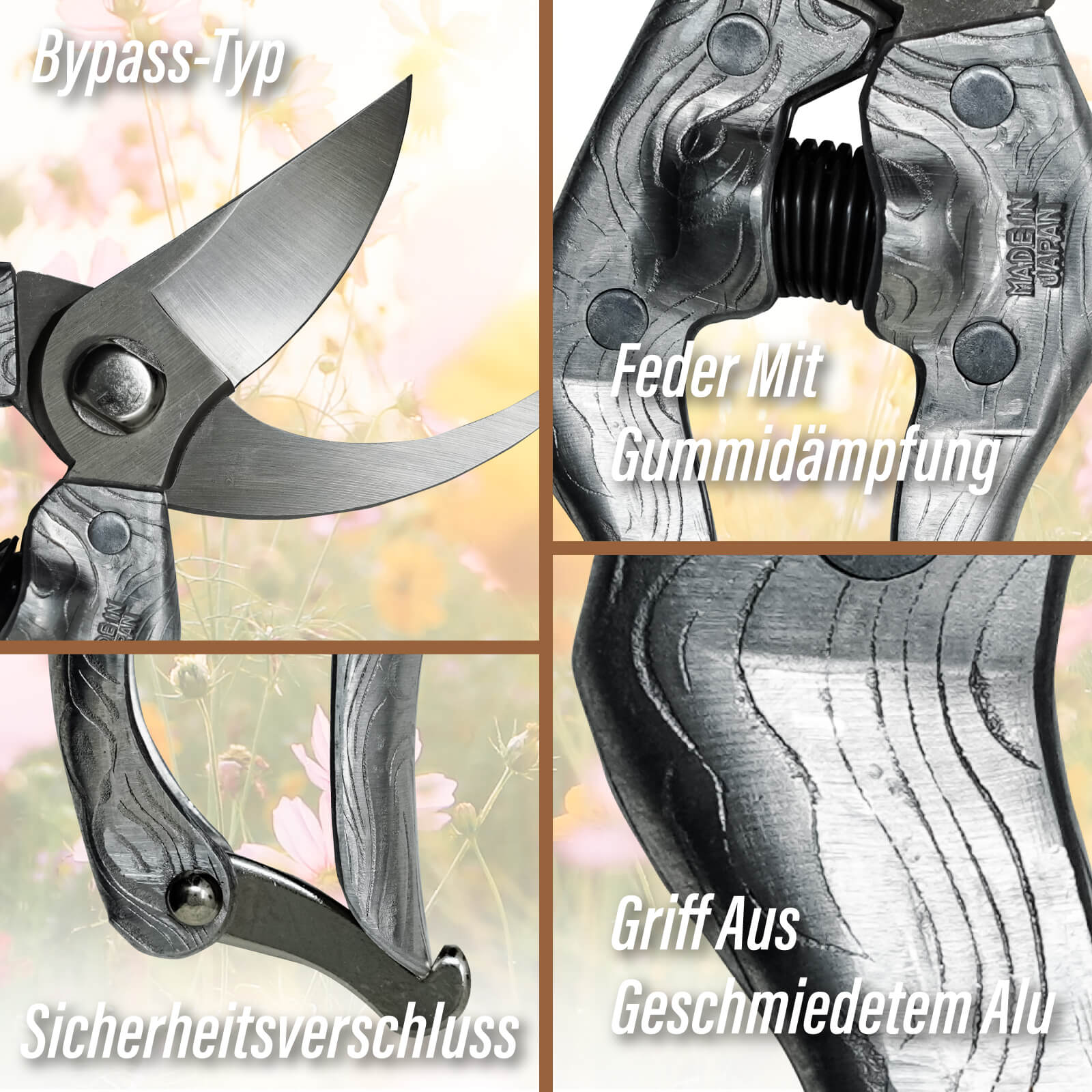 SUIZAN Bypass Pruning Shears 8.3 Inch (210mm) Plus Forged Aluminum Handle