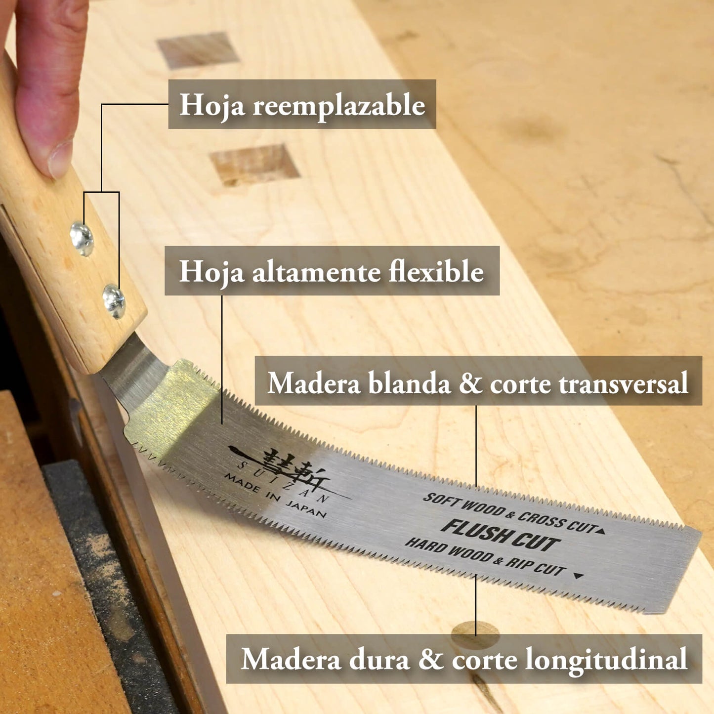 • JAPANESE STEEL: All SUIZAN Japanese saws are made with top-quality Japanese steel. The high-grade steel ensures razor-sharp cuts, and the blades are also replaceable for extended use.