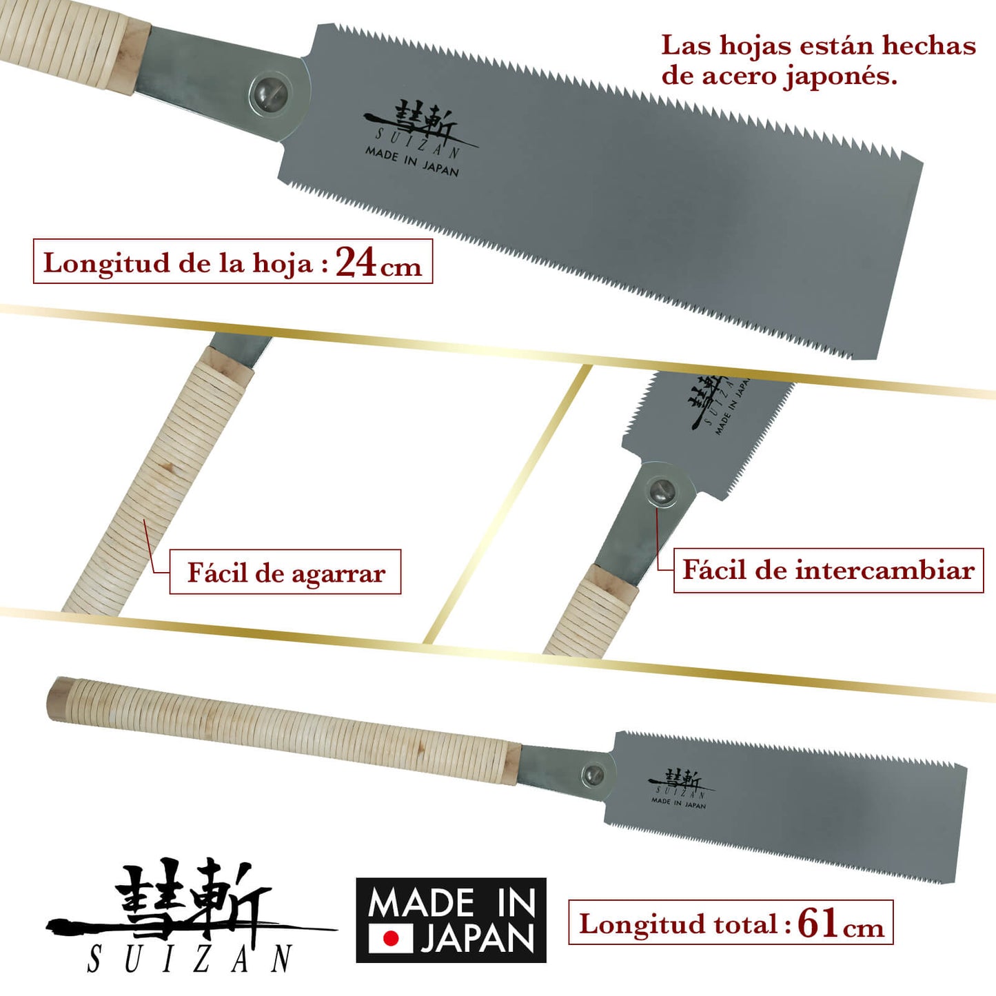 - ACERO JAPONÉS: Todas las sierras japonesas SUIZAN consisten en acero japonés de primera calidad. El acero de alta calidad realiza cortes como una navaja.