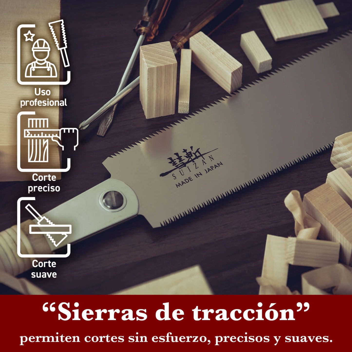 - SIERRA DE ESTILO JAPONÉS: Este producto es una "Sierra de tracción." La mayoría de las personas están acostumbradas a las sierras europeas, llamadas "sierras de empuje," que cortan mediante un movimiento de empuje. Por otro lado, las sierras japonesas cortan el material al jalar y se llaman "sierras de tracción." En comparación con las "sierras de empuje," este producto japonés es más ligero, requiere menos fuerza y resulta en un borde más limpio.