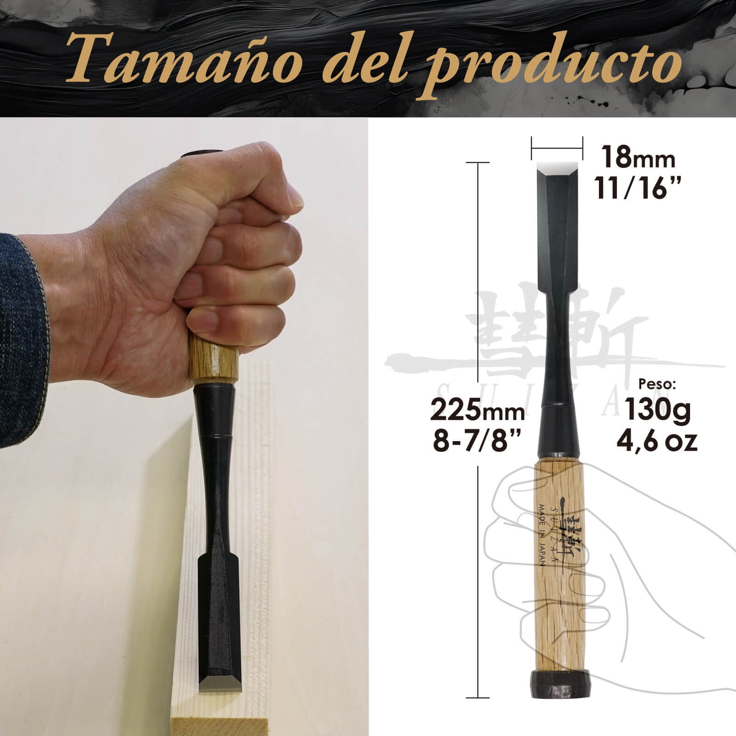 - 【CINCEL DE MADERA JAPONESA】Este es un cincel de madera japonés de alta calidad de SUIZAN. Está diseñado para cortes y formas precisas de madera, y puede utilizarse para una variedad de tareas como mortajar, cincelar y alisar.