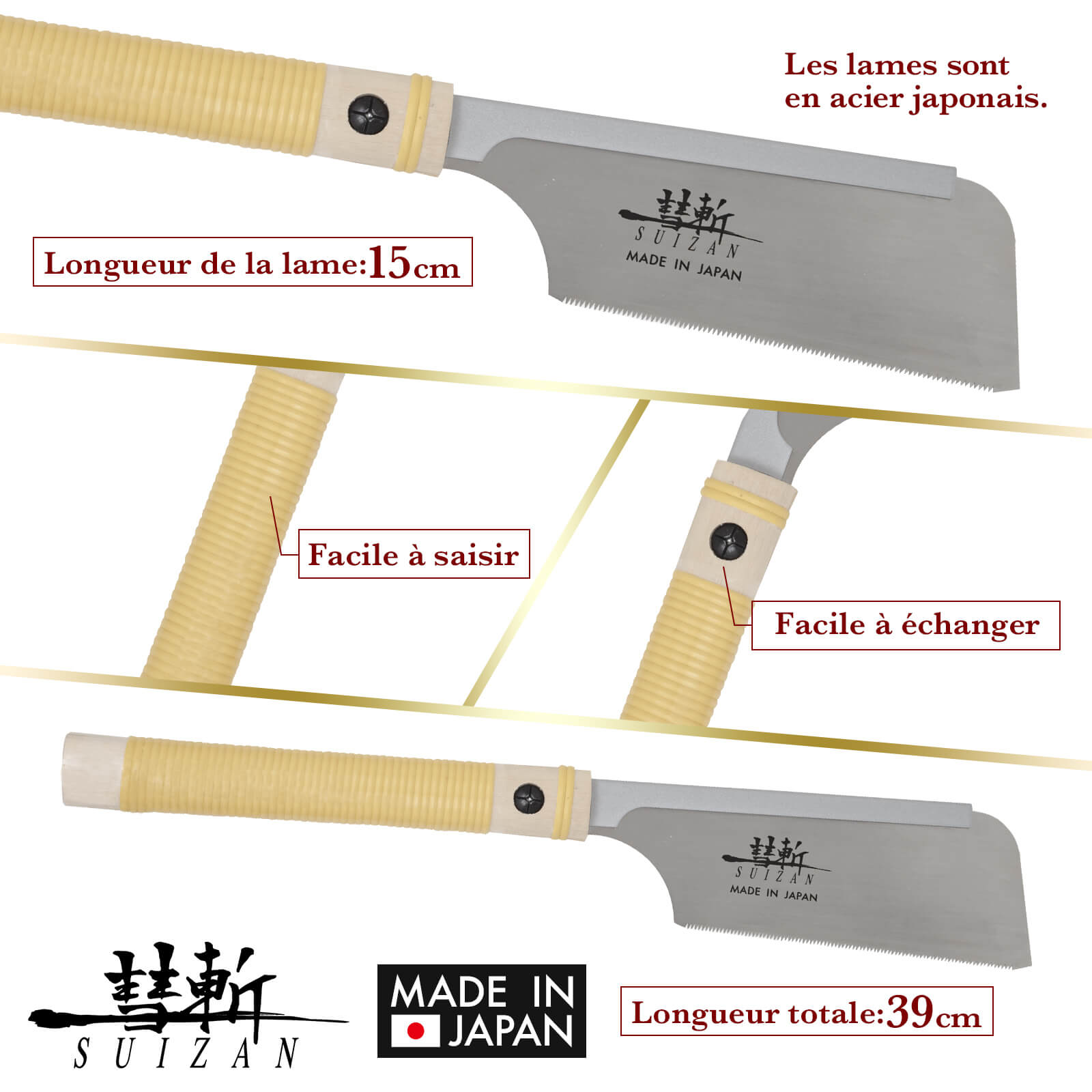 - ACIER JAPONAIS : Toutes les scies SUIZAN sont fabriquées en acier japonais de haute qualité. Cet acier de haute qualité permet des coupes extrêmement nettes.