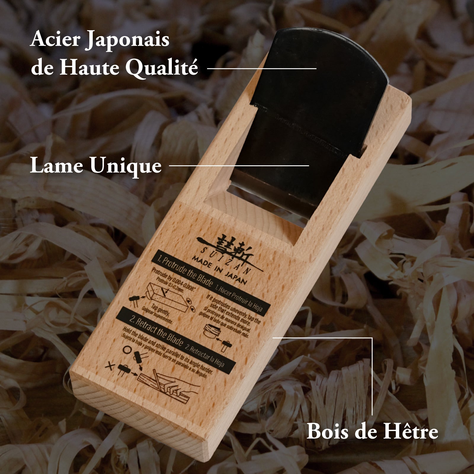SUIZAN Kanna Rabot japonais à bois 42mm - Outils de menuiserie professionnels