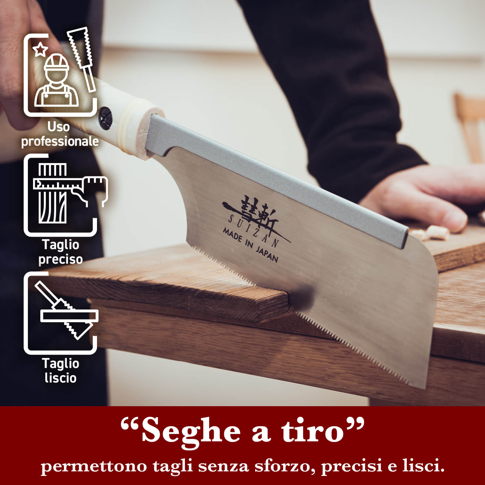 - PRODOTTO IN GIAPPONE: Tutti gli strumenti da lavorazione del legno SUIZAN sono prodotti in Giappone da maestri artigiani giapponesi. L'intero processo di produzione di questi strumenti viene completato in una delle città giapponesi note per la sua tradizione artigianale con una storia di oltre 100 anni.