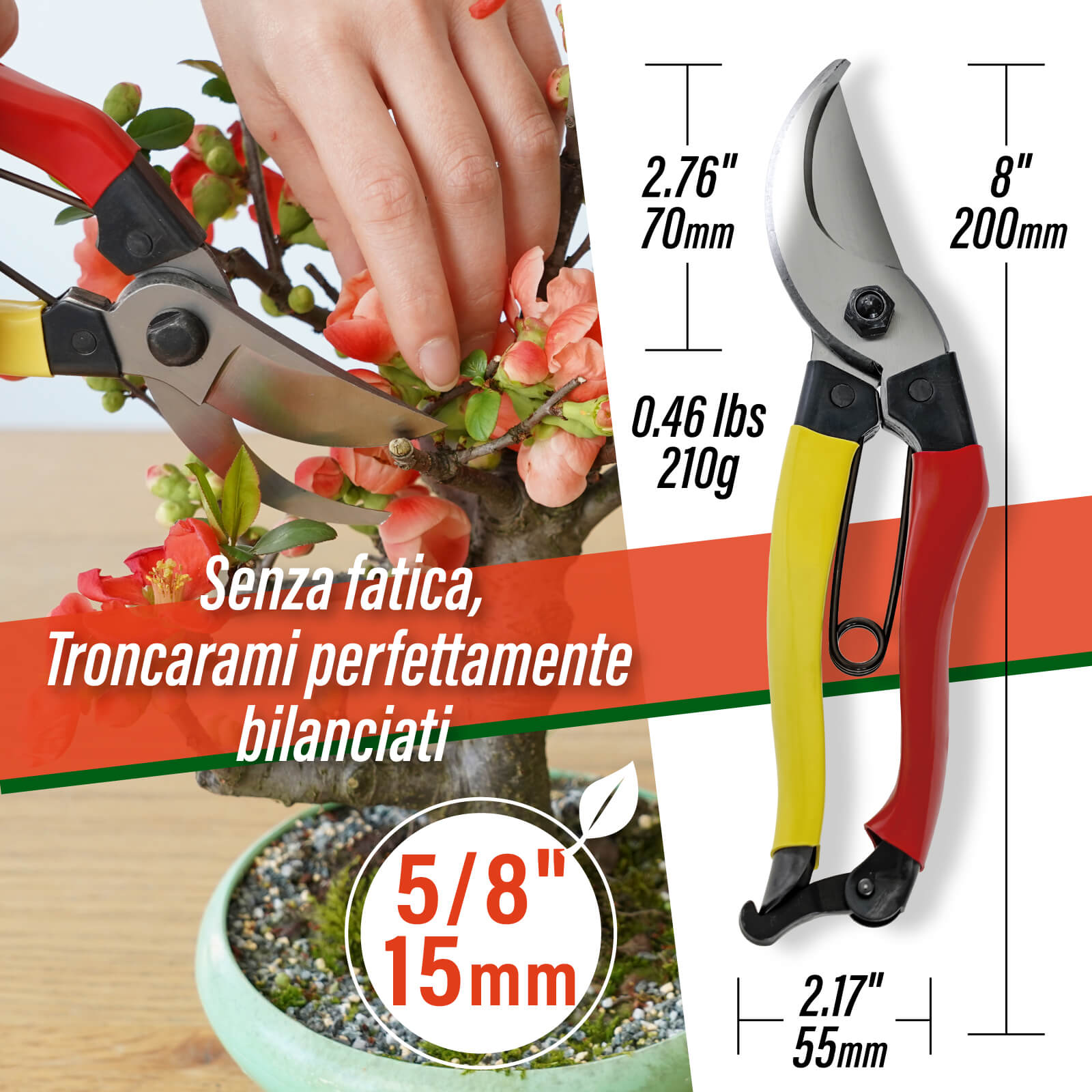 - 【Razor-Sharp Blade】Acciaio di alta qualità per le lame, temprato e finemente affilato per tagli puliti e potature facili, capaci di tagliare rami fino a 5/8" (15mm) di diametro.