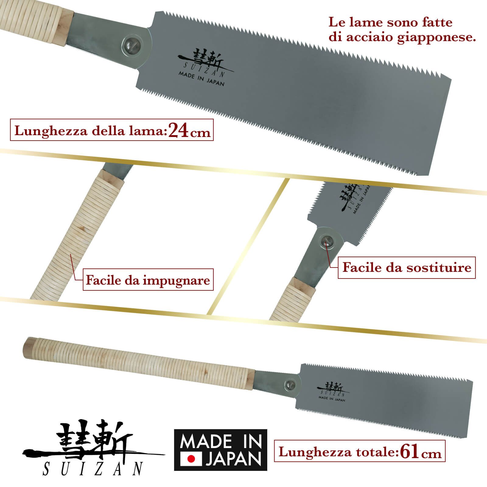 - ACCIAIO GIAPPONESE: Tutte le seghe giapponesi SUIZAN consistono di acciaio giapponese di alta qualità. L'acciaio di alta qualità permette tagli affilatissimi.