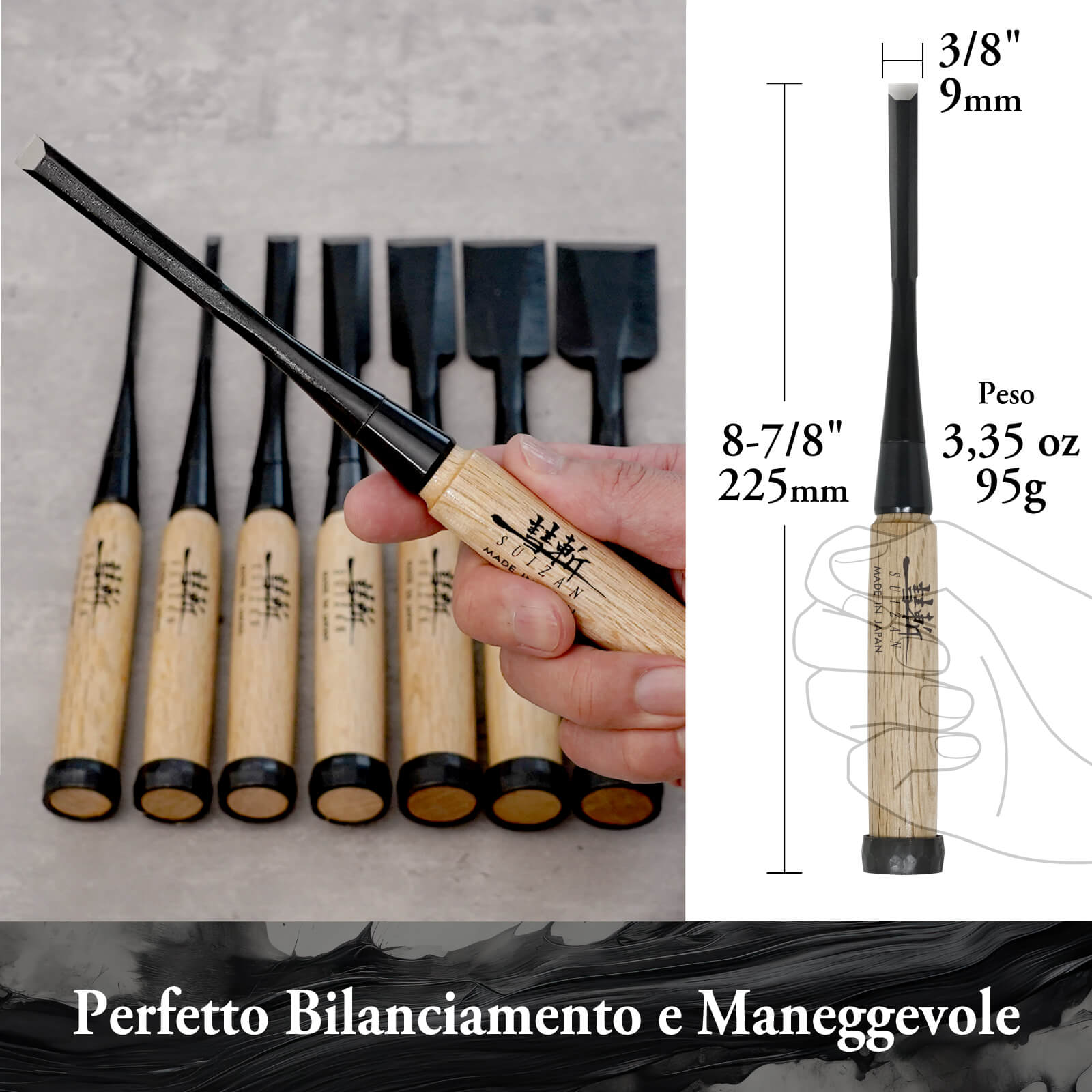 SUIZAN Japanese Wood Chisel 3/8 Inch (9mm) Professional Wood Chisels for Woodworking Oire Nomi