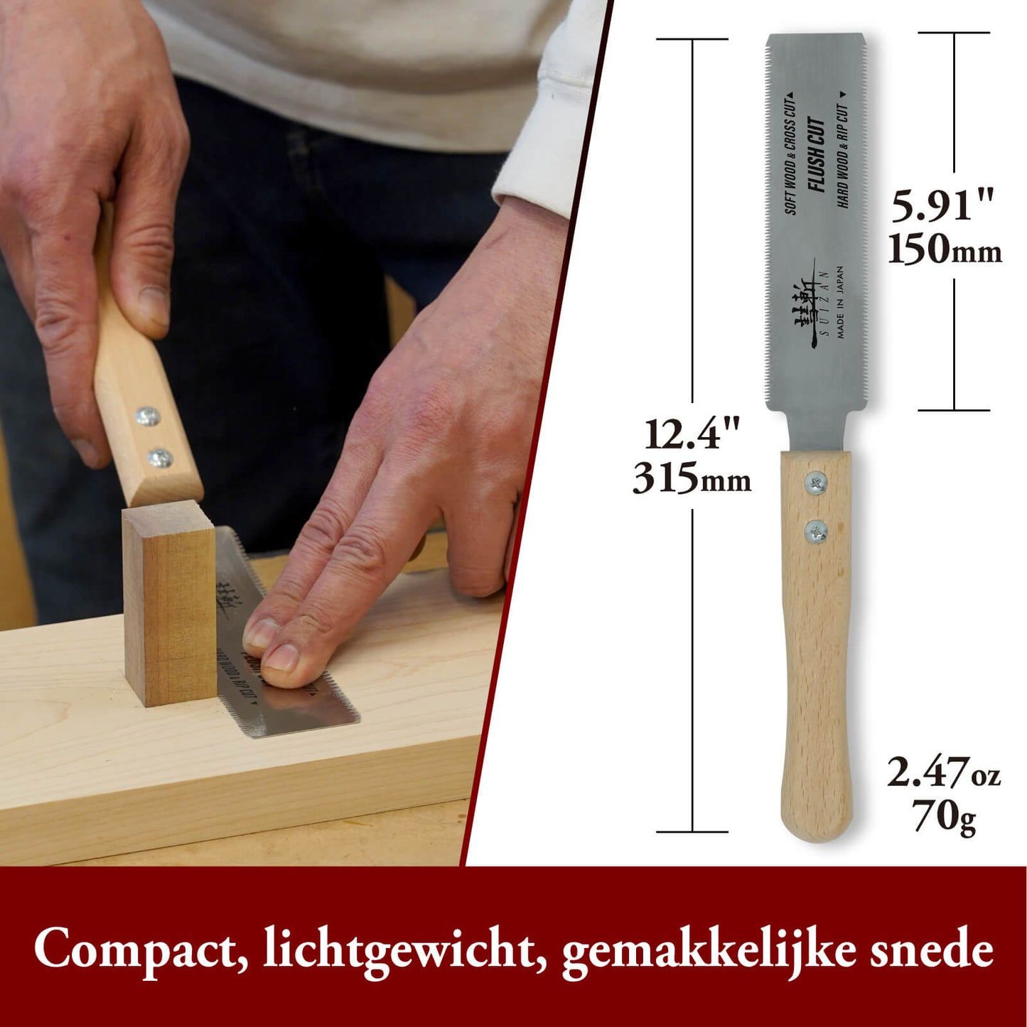 SUIZAN Flush Cut Saw 6 Inch (150mm) - Professional Japanese Pullsaw Ryoba Double Edge Handsaw