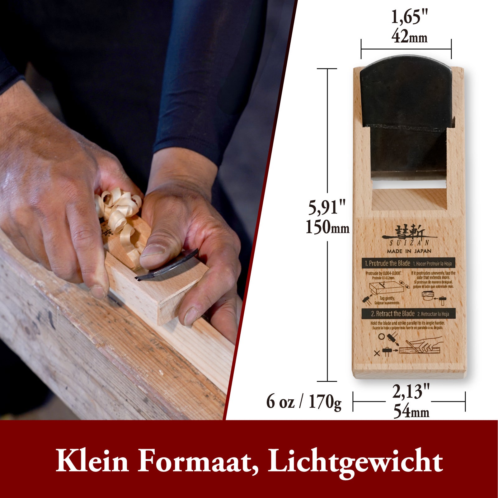 SUIZAN Kanna Japanse Houtschaaf 42mm - Professionele hand schaaf houtbewerkingsgereedschap