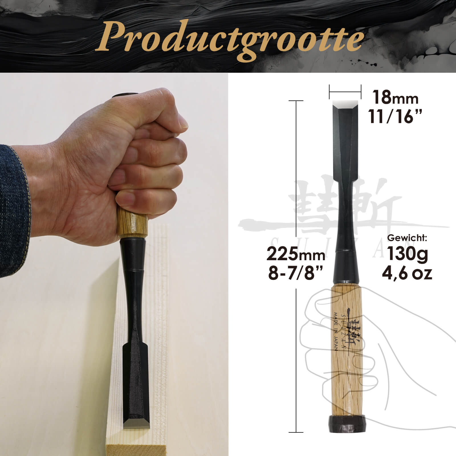- 【JAPANSE HOUTBEITEL】Dit is een hoogwaardige Japanse houtbeitel van SUIZAN. Het is ontworpen voor nauwkeurig snijden en vormen van hout en kan worden gebruikt voor verschillende taken zoals mortising, beitelen en gladstrijken.
