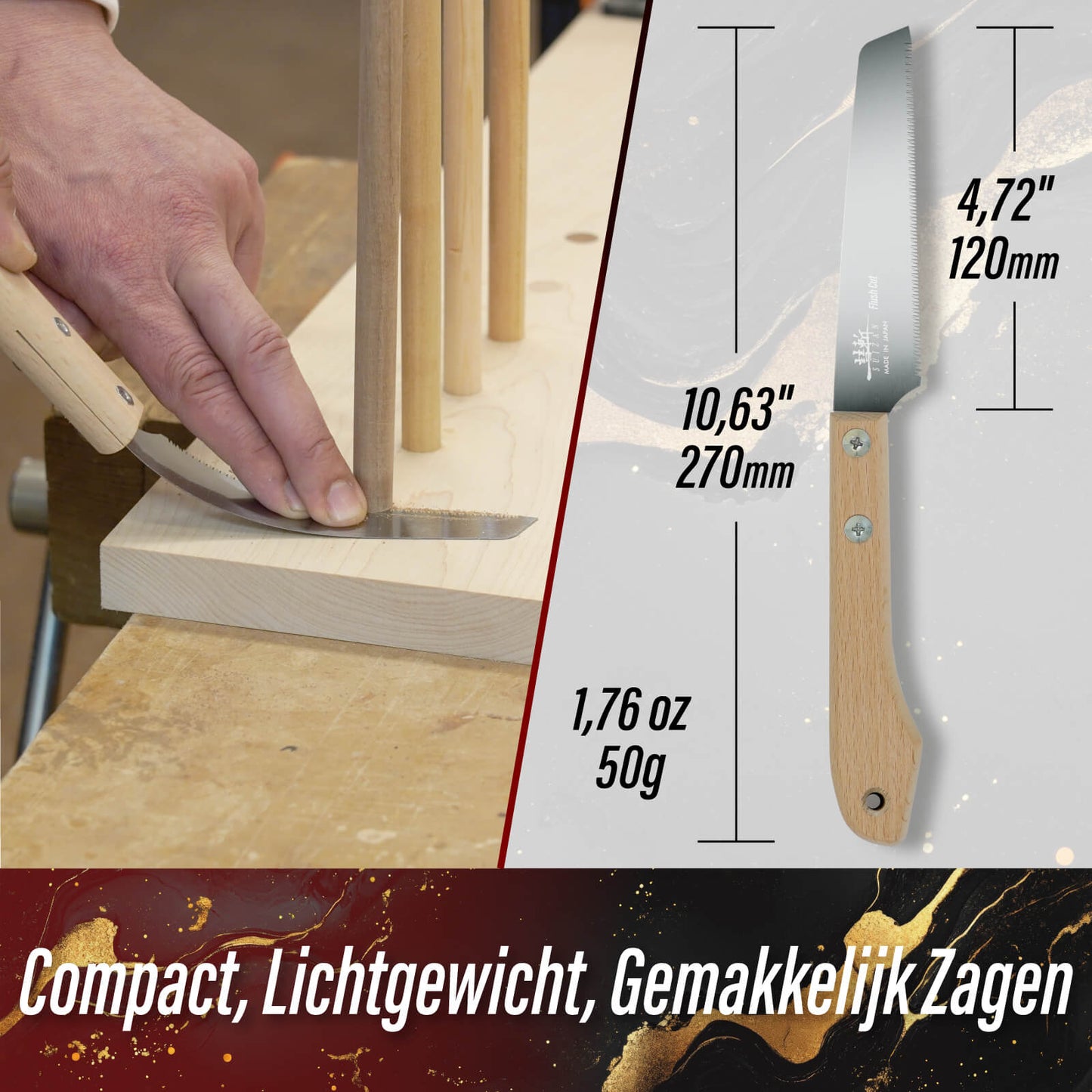 • 【SPECIFICATIONS】Overall Length: 10.63" (270mm), Blade Length: 4.72" (120mm), Blade Thickness: 0.016" (0.4mm), Kerf Width: 0.018"(0.45mm), TPI: 22, Weight: 1.76oz. Compact and lightweight, making it easy to handle for everyone from beginners to professionals.