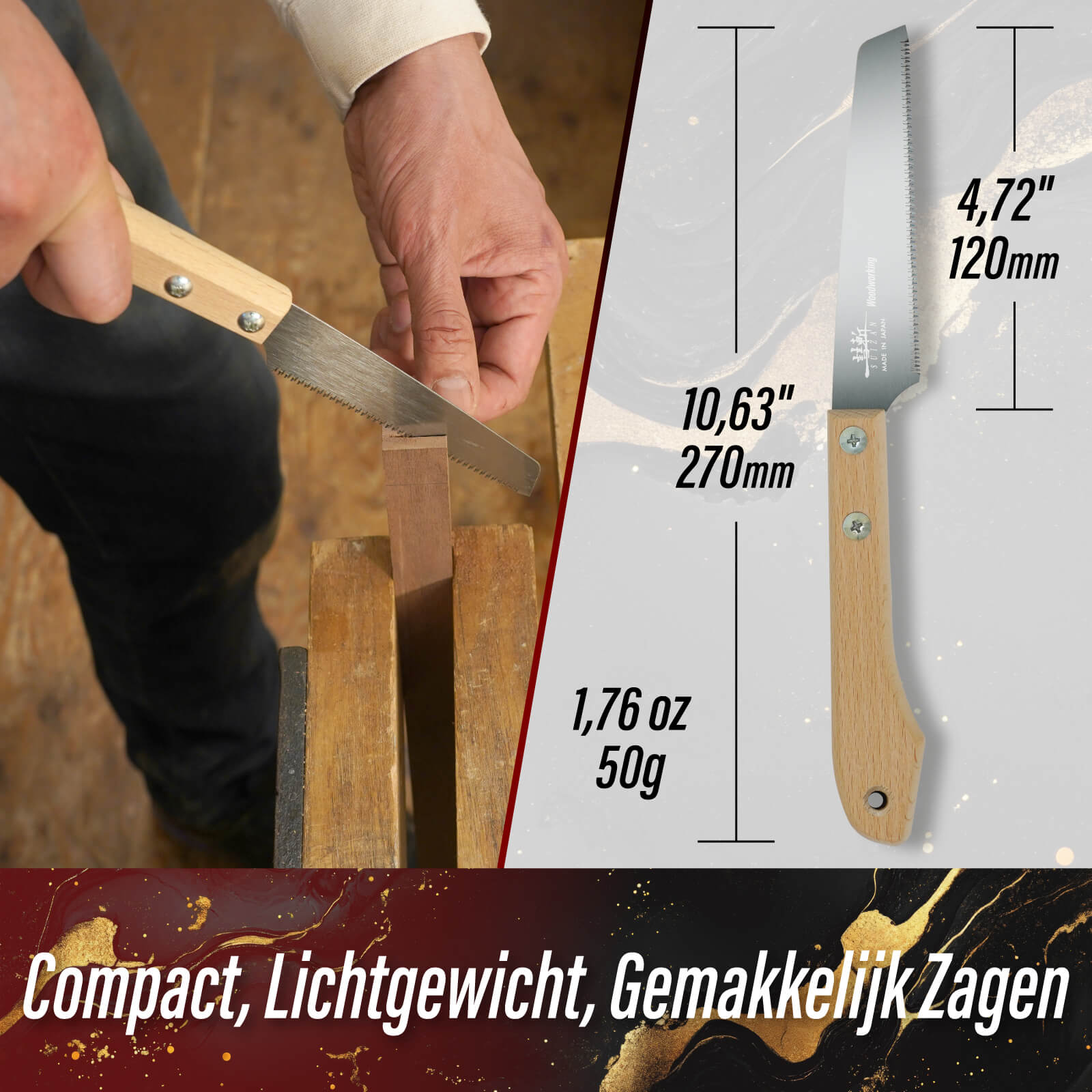 • 【SPECIFICATIONS】Overall Length: 10.63" (270mm), Blade Length: 4.72" (120mm), Blade Thickness: 0.02" (0.5mm), Kerf Width: 0.03"(0.8mm), TPI: 19, Weight: 1.76oz. Compact and lightweight, making it easy to handle for everyone from beginners to professionals.