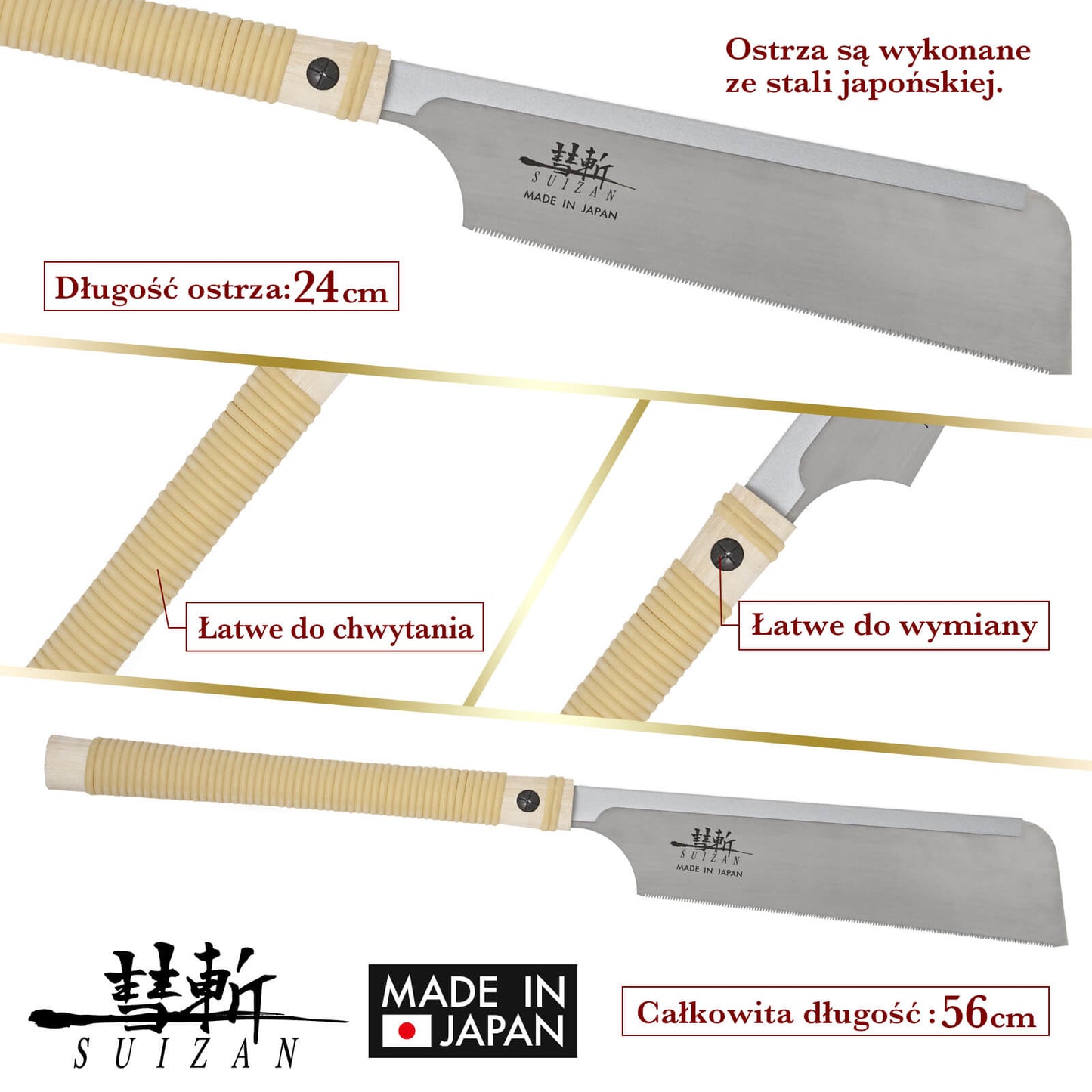 - JAPOŃSKA STAL: Wszystkie japońskie piły SUIZAN składają się z najwyższej jakości japońskiej stali. Wysokiej jakości stal umożliwia niezwykle ostre cięcia.