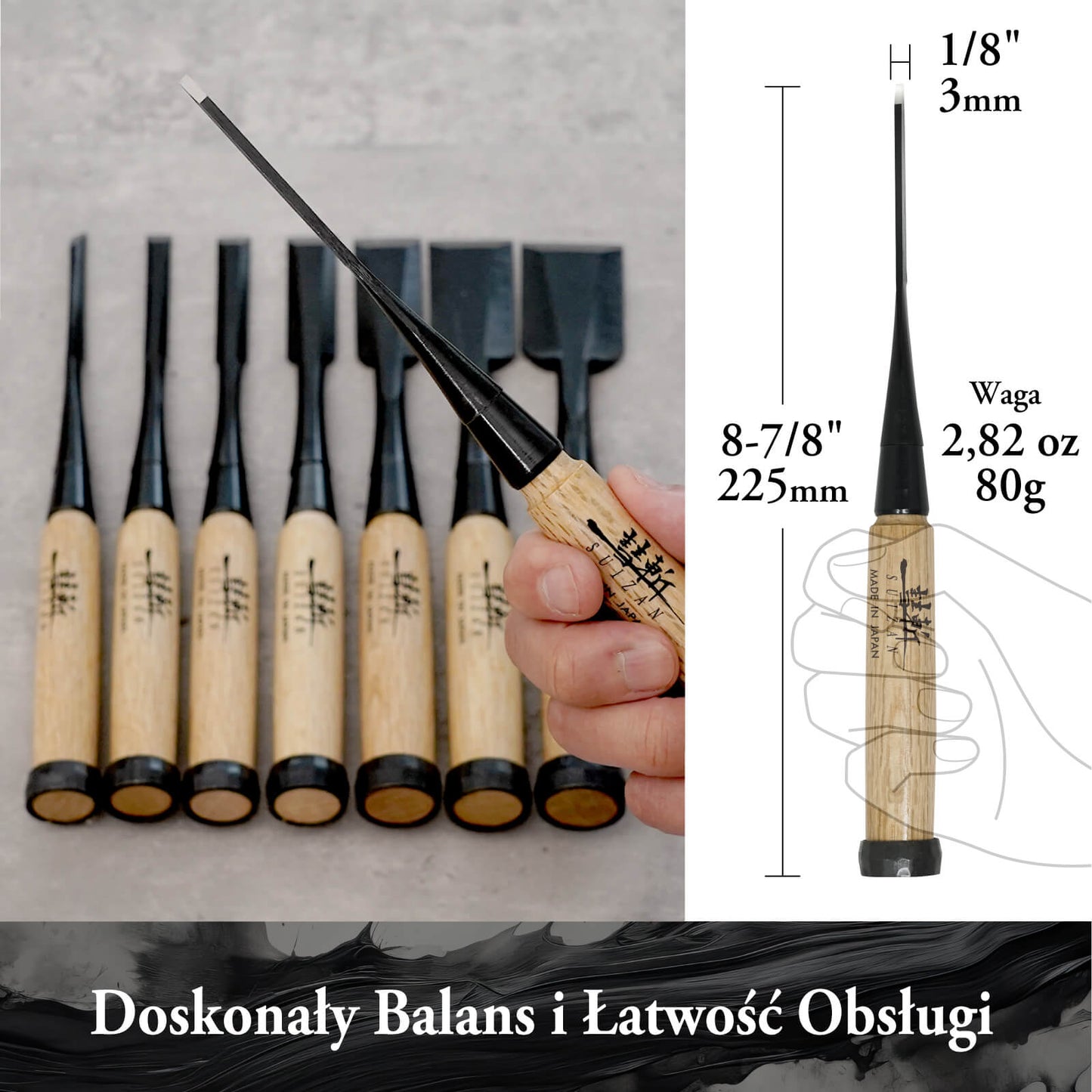 SUIZAN Japońskie dłuto do drewna 1/8 cala (3 mm) profesjonalne dłuto do drewna do obróbki drewna Oire Nomi