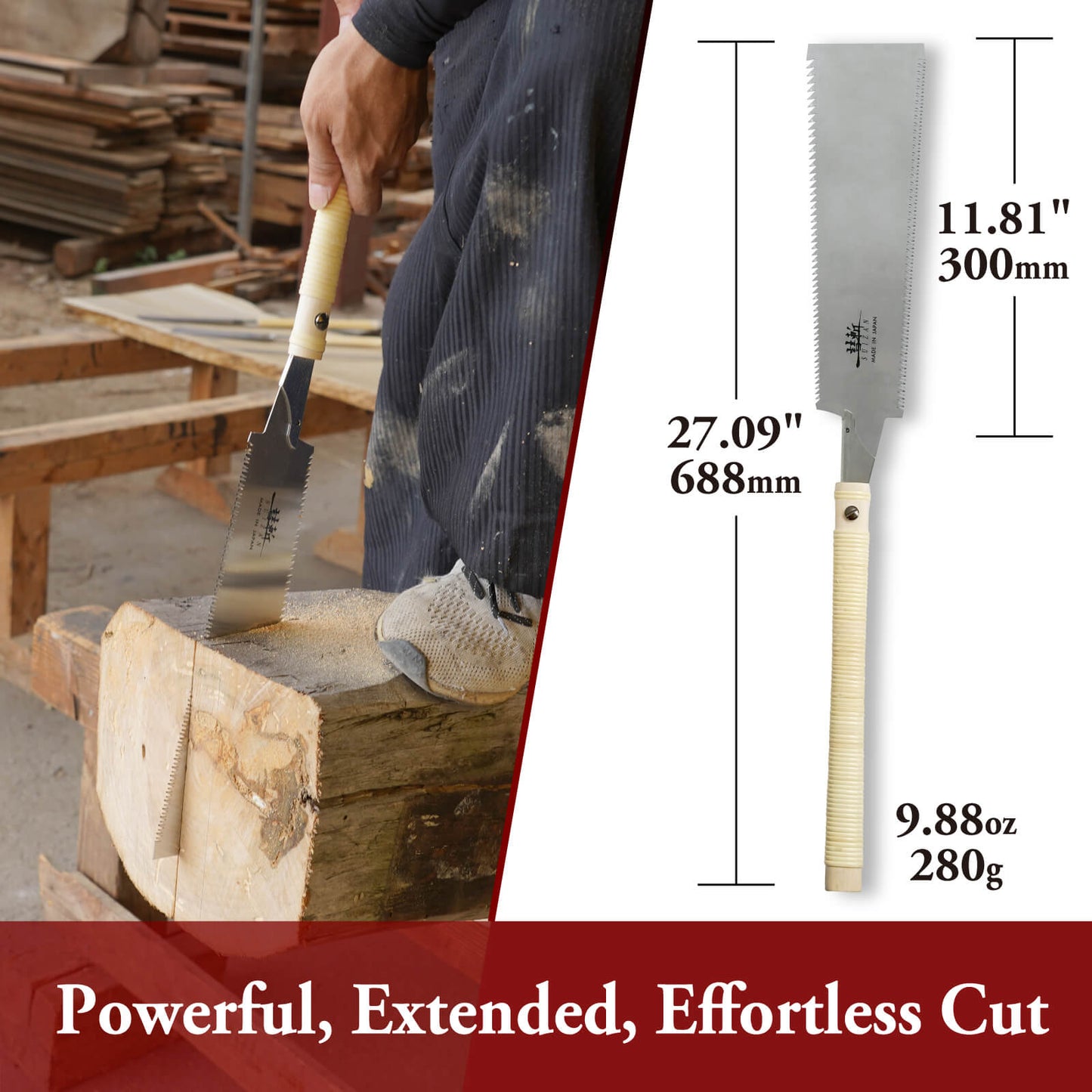 • 【Specifications】For Rip & Cross Cut, Blade Length: 12"(300mm), Blade Thickness: 0.028"(0.7mm), TPI: 8.5(6mm), Kerf Width: 0.043"(1.1mm), Overall Length: 27.1"(68.8cm), Since each handle is individually wrapped by hand by craftspeople, its appearance may vary from one to another. Cracks may occur during the manufacturing process. It is not a defect.