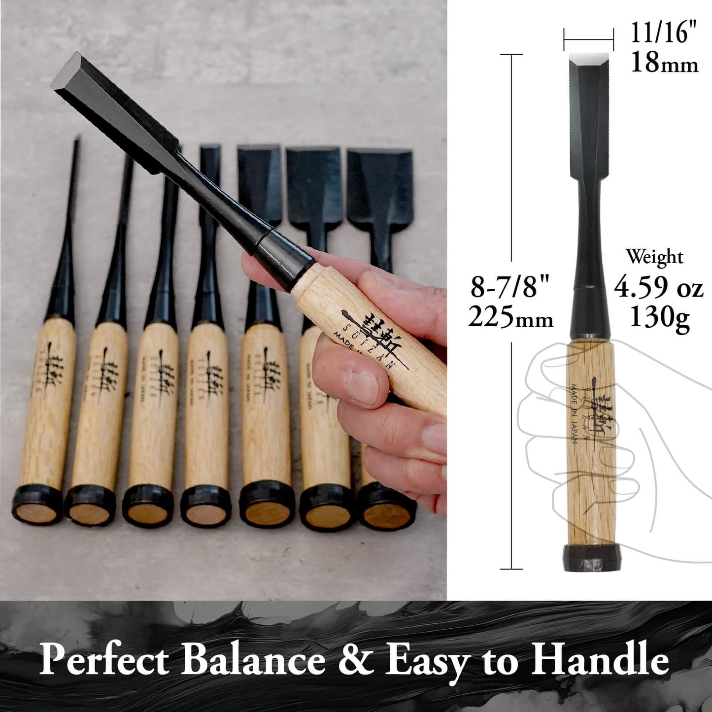 - 【MADE IN JAPAN】All SUIZAN products are manufactured in Japan by Japanese master craftsmen. The whole process of making these tools is completed in one of Japan’s towns known for its craft-making tradition with a history of over 150 years.