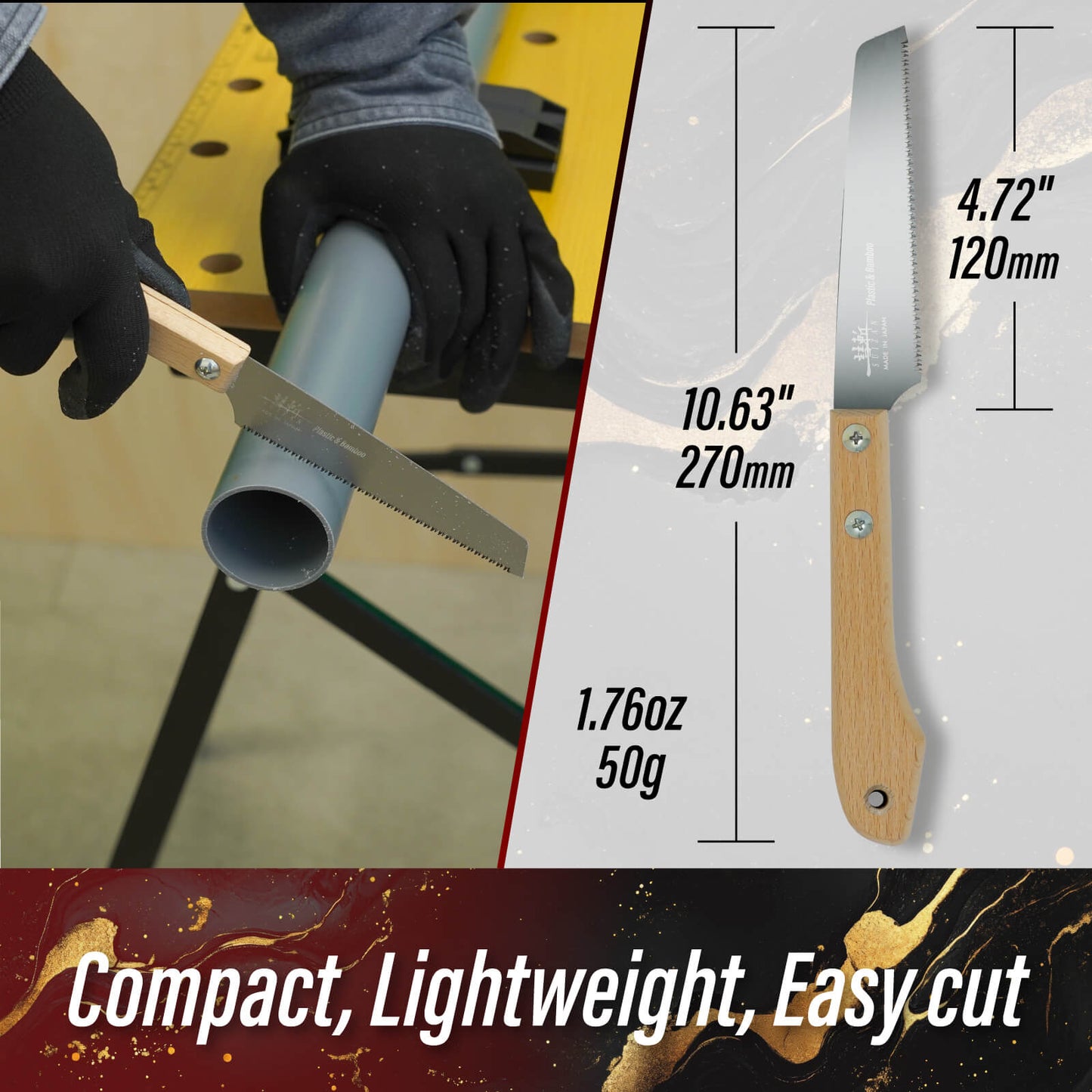 - 【Specifications】Overall Length: 10.63" (270mm), Blade Length: 4.72" (120mm), Blade Thickness: 0.02" (0.5mm), Kerf Width: 0.03"(0.8mm), TPI: 17, Weight: 1.76oz. Compact and lightweight, making it easy to handle for everyone from beginners to professionals.