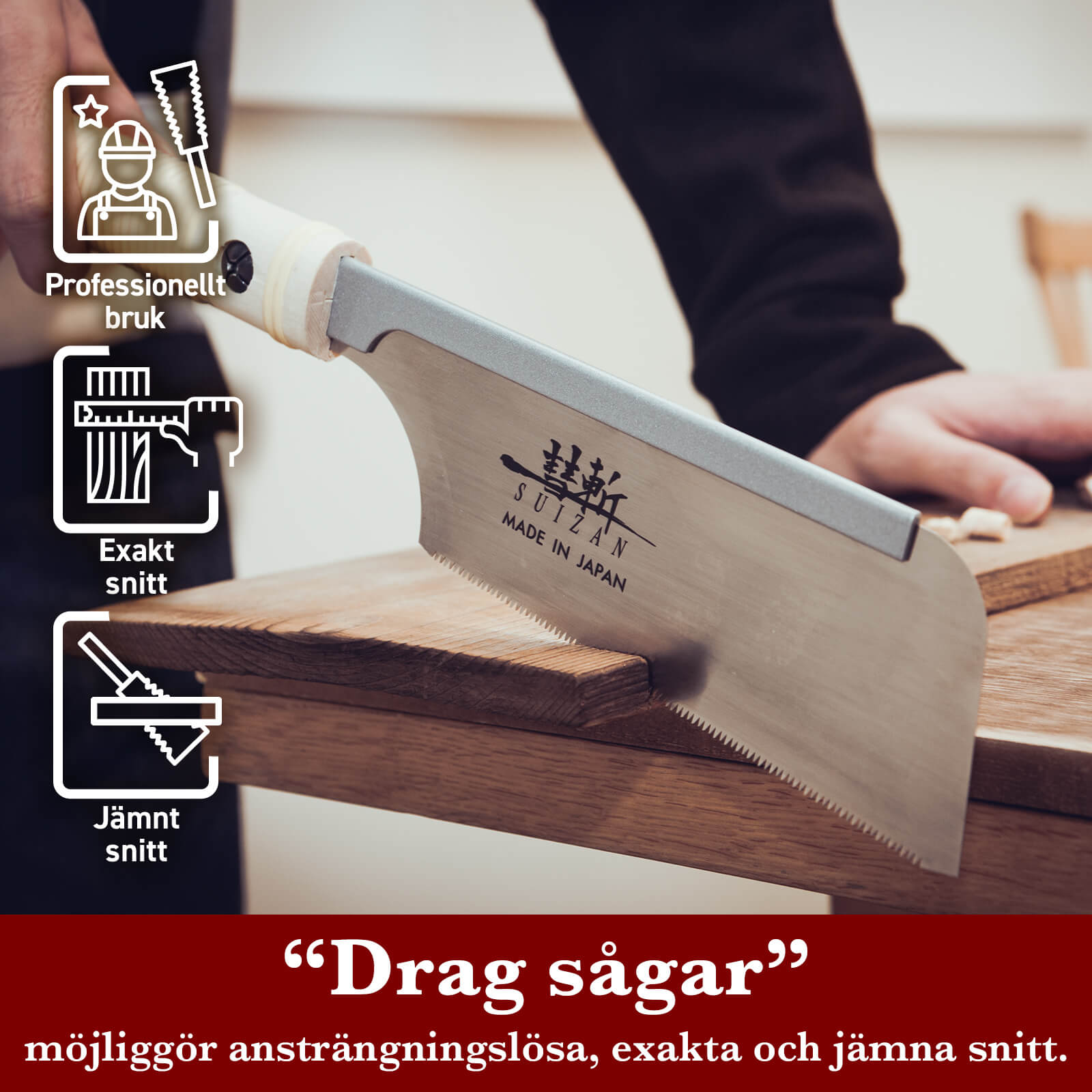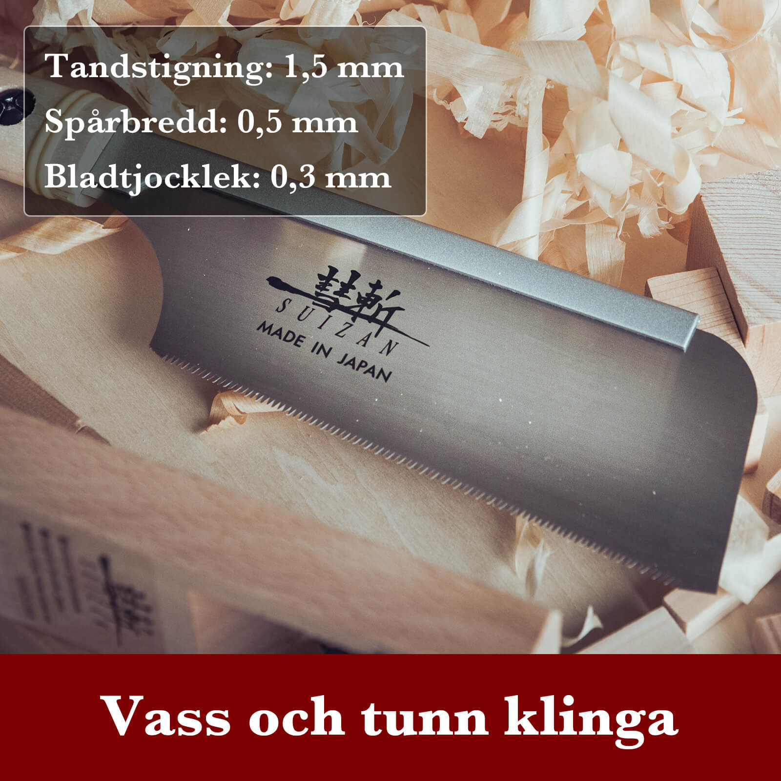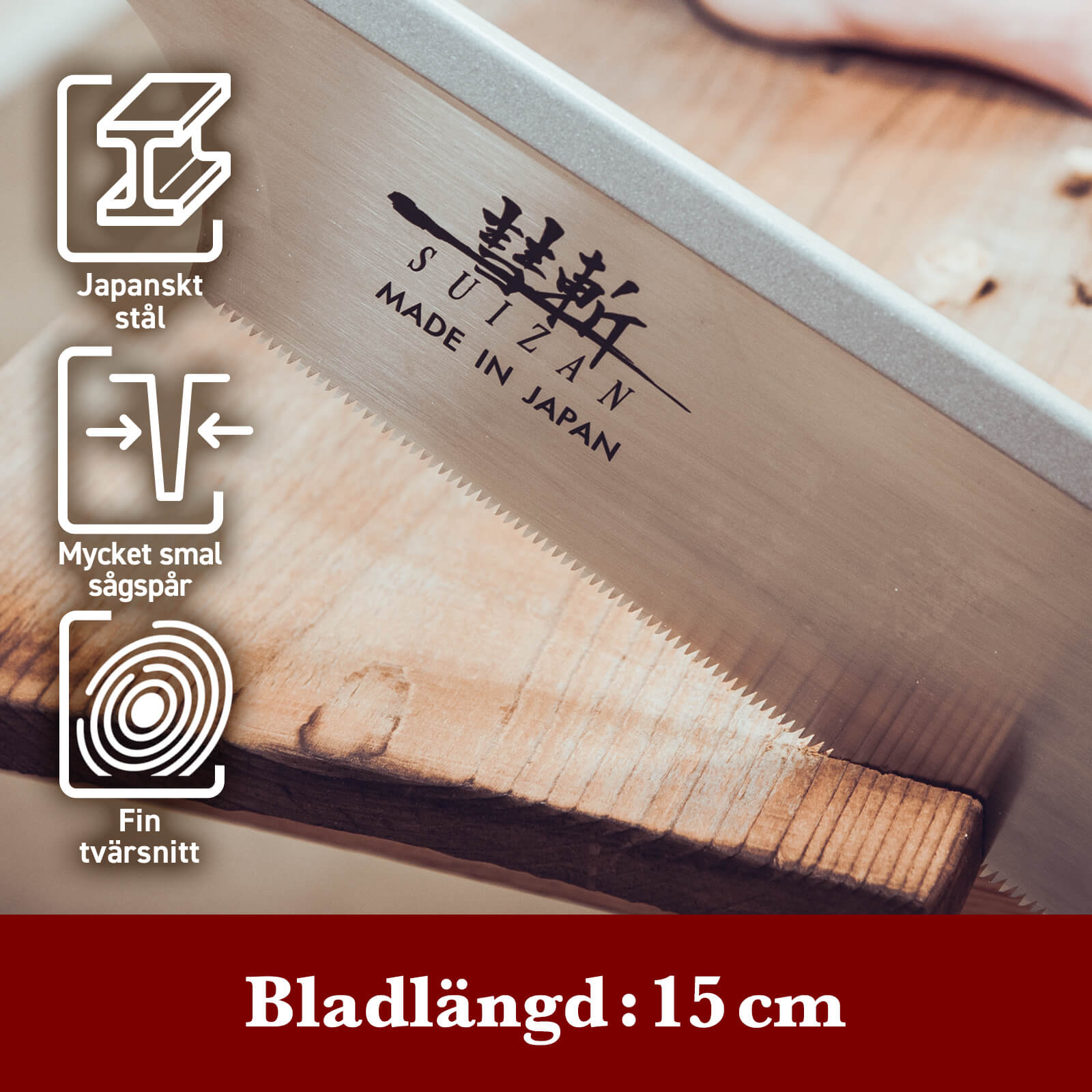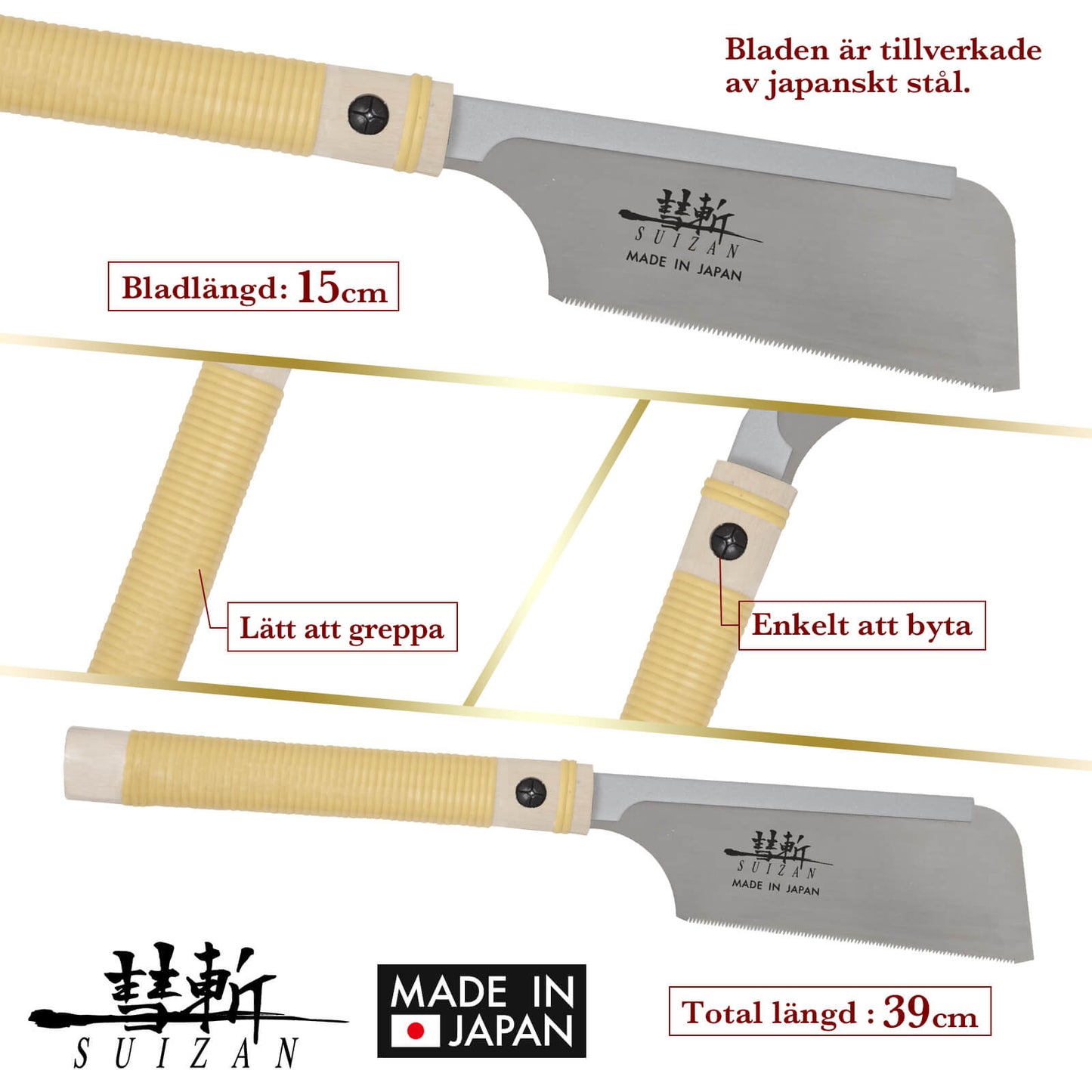 - JAPANSKT STÅL: Alla SUIZAN japanska sågar är tillverkade av högkvalitativt japanskt stål. Det högkvalitativa stålet gör sylvassa snitt.