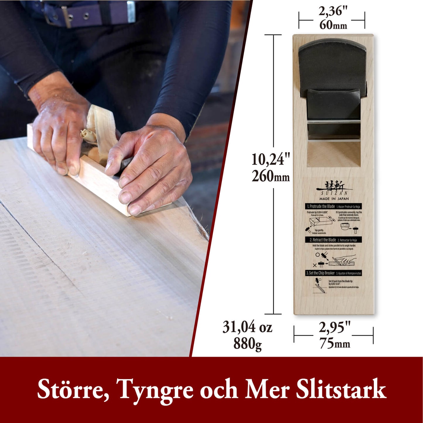 SUIZAN Kanna Japansk Hyvel 60mm - Professionell handhyvel blockhyvel träbearbetningsverktyg